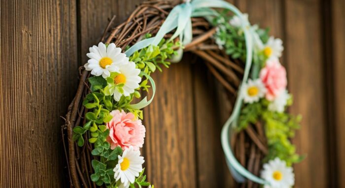Jak ozdobić wianek na drzwi wiosennymi kwiatami i kolorowymi wstążkami?