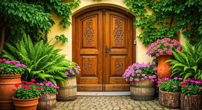 Jakie dekoracje można zastosować przy wejściu do domu?